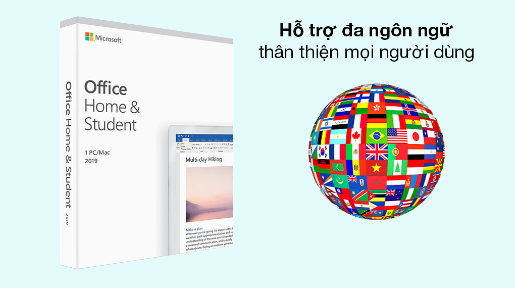 Ngoài ra, bộ Office Home and Student 2019 All languages sẽ hỗ trợ tất cả các ngôn ngữ. Bạn có thể tùy chọn cho để phần mềm hiển thị theo tiếng Anh, tiếng Việt hay bất cứ loại ngôn ngữ nào mà bạn cho là tiện dụng cho mình.