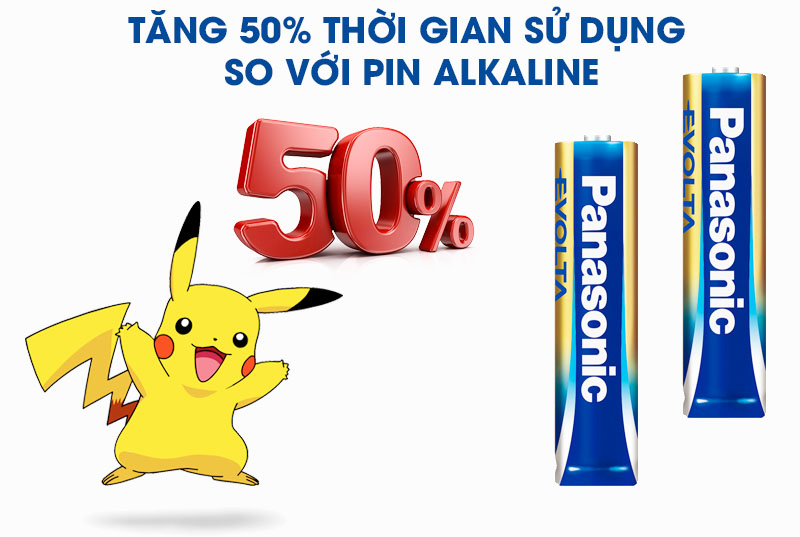 - Dung lượng sử dụng gấp hơn 50% so với pin Alkaline.