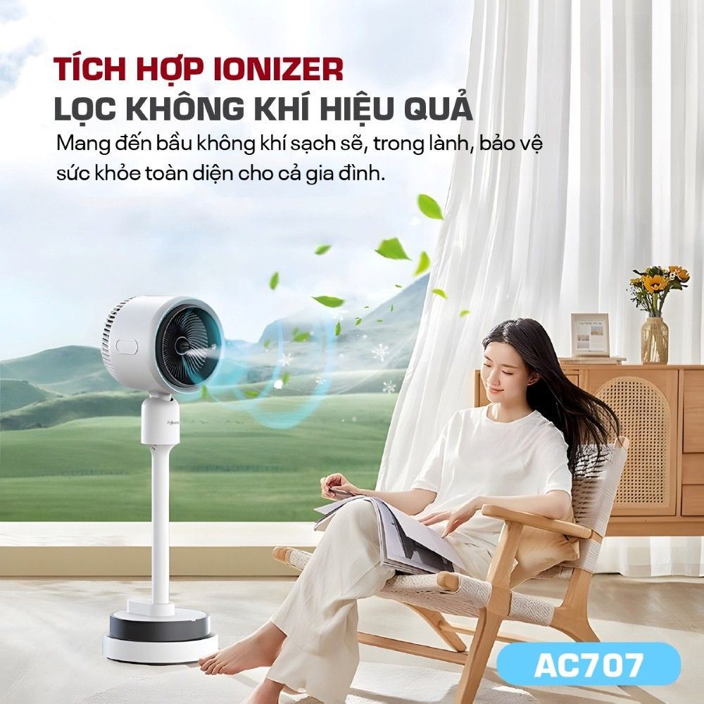 Dù thời tiết thay đổi thất thường, việc trang bị một thiết bị làm mát và sưởi ấm đa năng luôn là giải pháp tối ưu để đảm bảo sự tiện nghi cho cả gia đình. Quạt điều hoà FUJIHOME AC707 60W đáp ứng hoàn hảo nhu cầu này với khả năng hoạt động hai chiều linh hoạt. Không chỉ giúp điều hòa nhiệt độ hiệu quả quanh năm, sản phẩm còn được tích hợp nhiều công nghệ hiện đại, góp phần bảo vệ sức khỏe người dùng và mang lại trải nghiệm sử dụng vượt trội.