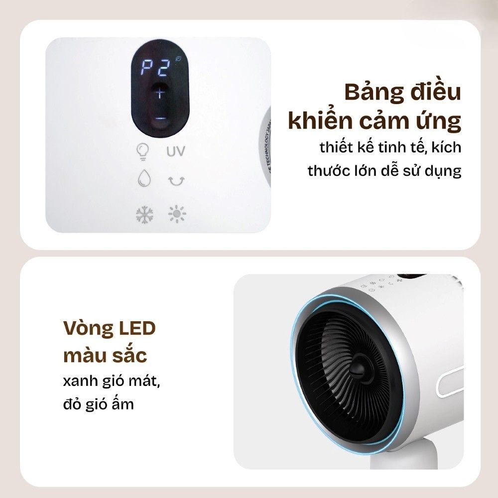 Ngược lại, khi mùa đông đến, thiết bị biến hóa thành máy sưởi chuyên dụng với công suất lên đến 1800W, nhanh chóng làm ấm không gian, xua tan cái lạnh. Việc tích hợp cả hai tính năng trong một sản phẩm giúp bạn tối ưu chi phí đầu tư và tiết kiệm diện tích đáng kể.