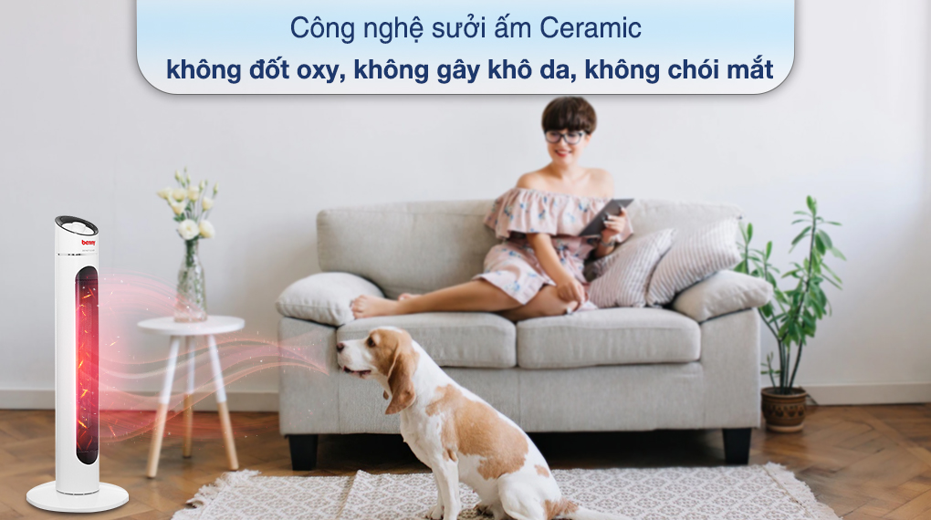 - Quạt sưởi sử dụng công nghệ sưởi gốm Ceramic không khô da, không đốt cháy oxy, làm nóng nhanh mà vẫn an toàn cho người sử dụng.