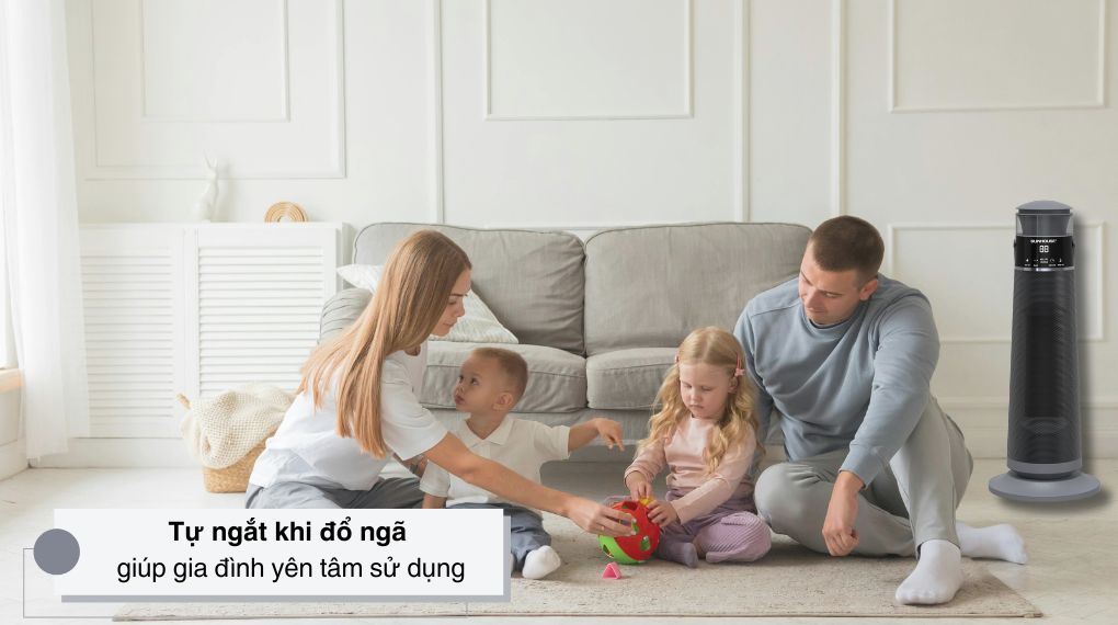 Quạt sưởi gốm Sunhouse có các tính năng an toàn được tích hợp sẵn: cơ chế tự ngắt khi quá nhiệt hoặc khi bị đổ ngã, giúp giảm nguy cơ cháy nổ và hạn chế rủi ro trong quá trình sử dụng.