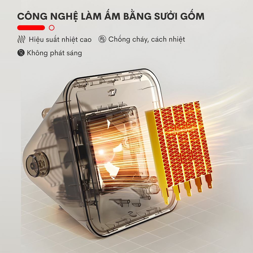 FUJIHOME FH1100 thuộc dòng quạt sưởi gốm FUJIHOME FH1100 hiện đại, sử dụng nguyên lý làm nóng bằng gốm sứ. Ưu điểm nổi bật của công nghệ này là không đốt cháy oxy, không phát sáng gây chói mắt và đặc biệt không tạo tiếng ồn khó chịu, duy trì độ ẩm tự nhiên trong phòng. Nhờ vậy, sản phẩm rất phù hợp cho gia đình có người già và trẻ nhỏ, hay những ai yêu thích sự yên tĩnh.