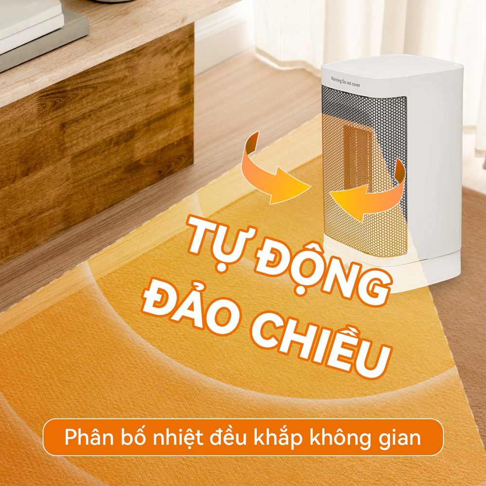 Chiếc quạt sưởi còn có chế độ đảo chiều gió tự động giúp hơi ấm được phân bổ đều khắp căn phòng, xua tan nỗi lo về cảm giác nóng rát cục bộ thường gặp ở các dòng sưởi truyền thống. Bạn sẽ cảm nhận được sự ấm áp lan tỏa nhẹ nhàng, dễ chịu.