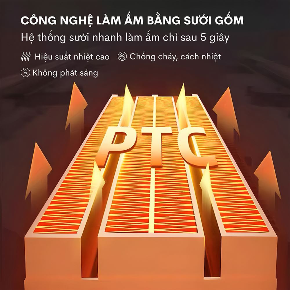 Sản phẩm sử dụng công nghệ làm ấm bằng sưởi gốm PTC tiên tiến, làm ấm chỉ sau 5 giây, không đốt cháy oxy, không phát sáng và không gây tiếng ồn, giúp duy trì sự cân bằng độ ẩm và không khí trong lành, tạo cảm giác dễ chịu khi sử dụng.