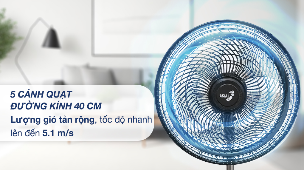 - Mẫu quạt Asia này có 1 chế độ gió thường, nghĩa là quạt sẽ thổi ra luồng gió với tốc độ đều đặn không luân phiên theo nhịp điệu lúc mạnh, lúc yếu.