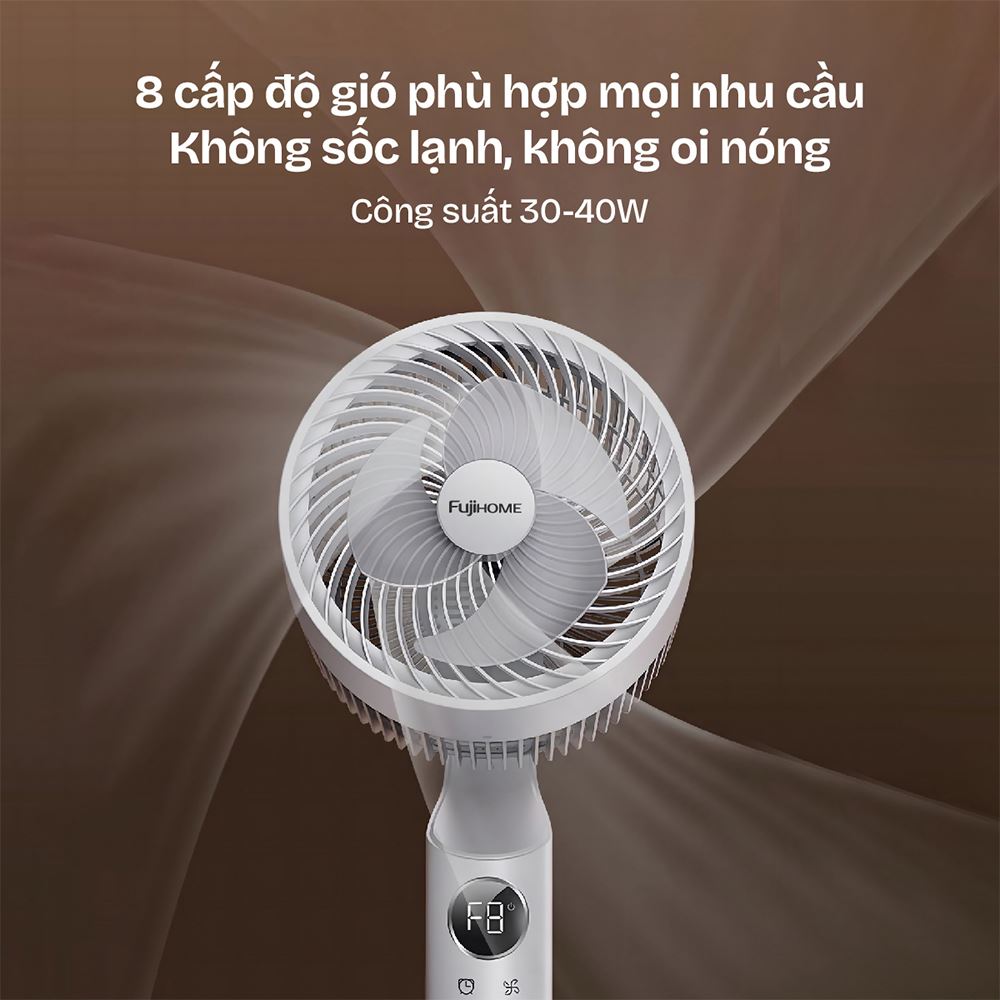 Điểm nổi bật của FUJIHOME CF201 30 - 40W là khả năng điều chỉnh 8 cấp độ gió khác nhau, cho phép người dùng tùy chỉnh cường độ gió phù hợp với mọi nhu cầu. Chế độ gió thường tuần hoàn không khí giúp phân tán gió đều khắp phòng, mang lại cảm giác mát mẻ dễ chịu.