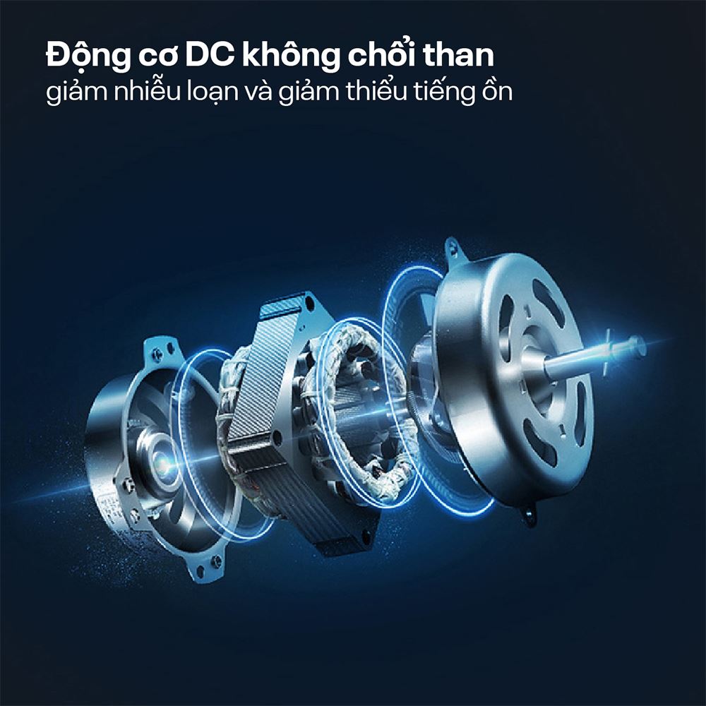 Quạt FUJIHOME BF18 30W được trang bị động cơ DC không chổi than, hoạt động với công suất 30W mang lại hiệu suất cao, bền bỉ và tiết kiệm điện năng đáng kể, giảm chi phí sinh hoạt cho gia đình. Đồng thời, loại động cơ này cũng góp phần giảm độ ồn (<55 dB) trong quá trình vận hành, mang lại không gian yên tĩnh.