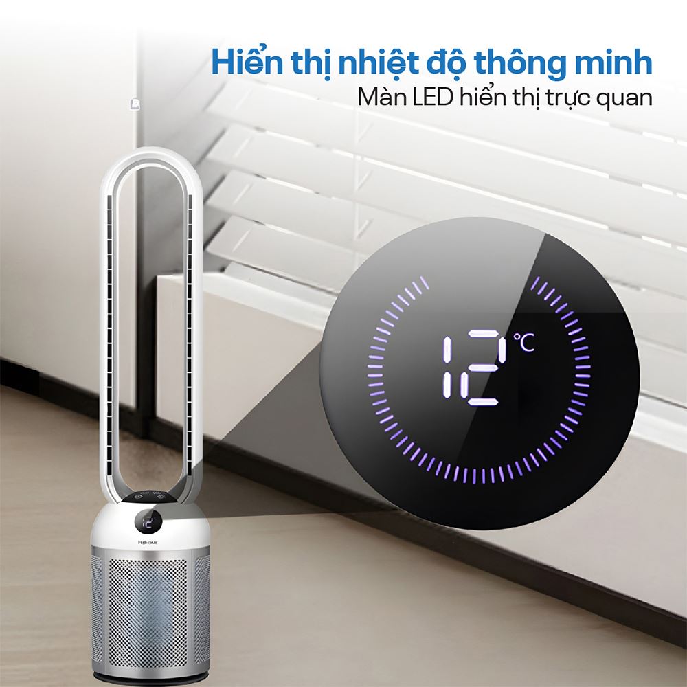 Quạt không cánh trang bị chức năng hẹn giờ lên đến 12 tiếng - bạn có thể thoải mái tận hưởng không gian mát lạnh mà không lo quạt hoạt động suốt đêm hay gây lạnh quá mức. Với hẹn giờ linh hoạt, chỉ cần thiết lập thời gian mong muốn và quạt sẽ tự động tắt khi đến thời điểm đặt trước, mang lại sự tiện nghi và thoải mái tuyệt đối cho giấc ngủ hoặc những khoảnh khắc thư giãn.