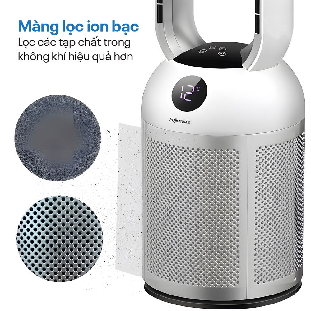 Quạt FUJIHOME mang đến khả năng lọc không khí vượt trội nhờ tích hợp 2 màng lọc HEPA cao cấp, chiếc quạt này có thể loại bỏ tới 99.97% bụi mịn PM2.5, vi khuẩn, virus và các mùi khó chịu, mang lại bầu không khí trong lành cho ngôi nhà bạn.