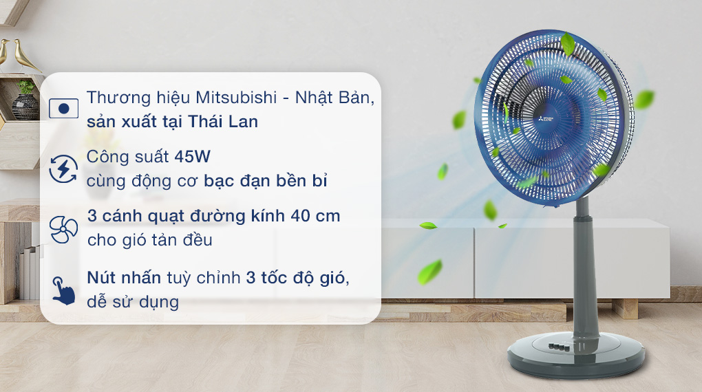 Sản phẩm quạt lửng Mitsubishi này đến từ thương hiệu của Nhật Bản, sản xuất tại Thái Lan đảm bảo về nguồn gốc và chất lượng sản phẩm.