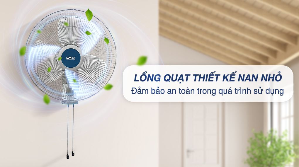 - Quạt treo tường AC 3 cánh AWF03A163 sở hữu thiết kế treo tường gọn gàng, giúp tiết kiệm không gian, phù hợp sử dụng trong phòng khách, phòng ngủ, phòng làm việc.