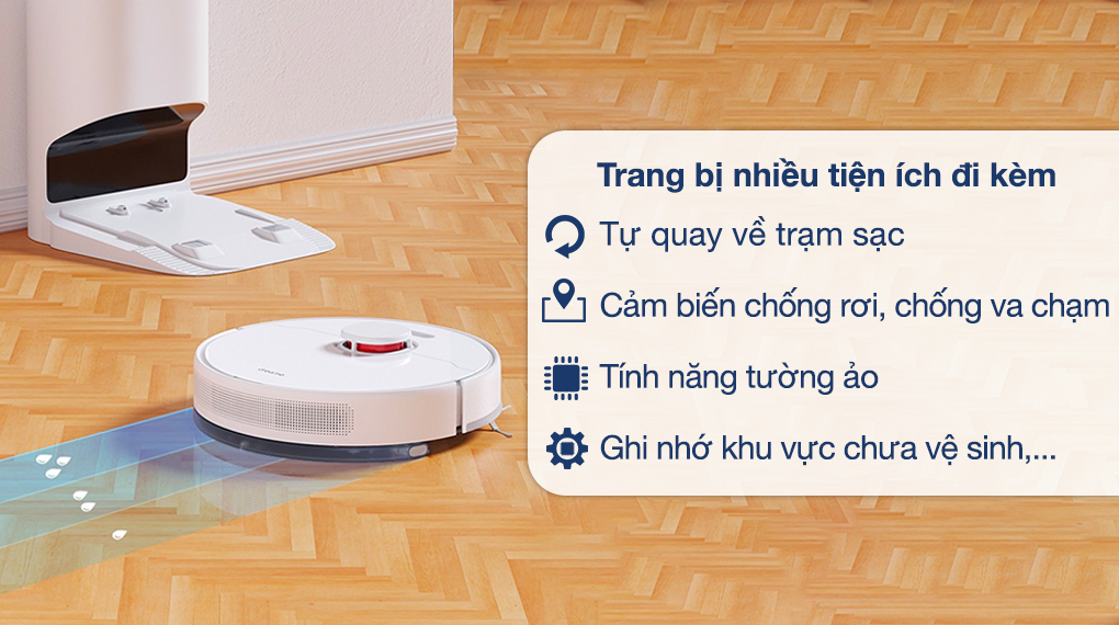 - Tính năng tự quay về trạm sạc khi hết pin.
