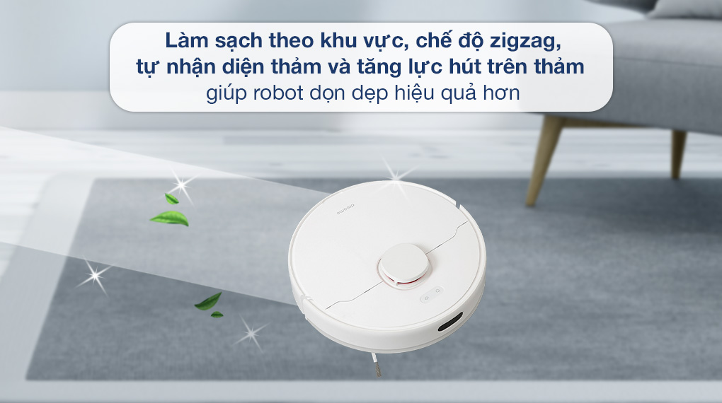 Robot hút bụi Dreame gồm các chế độ làm việc khác nhau: làm sạch theo khu vực, chế độ zigzag, tự nhận diện thảm và tăng lực hút trên thảm. Các chế độ này tạo nên quy trình làm việc hiệu quả, đơn giản và khép kín.