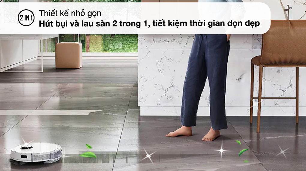 Robot hút bụi lau nhà Ecovacs Deebot T9 Plus có thể vừa hút bụi vừa lau sàn, thuận tiện cho việc dọn dẹp nhà cửa trở nên đơn giản hơn.