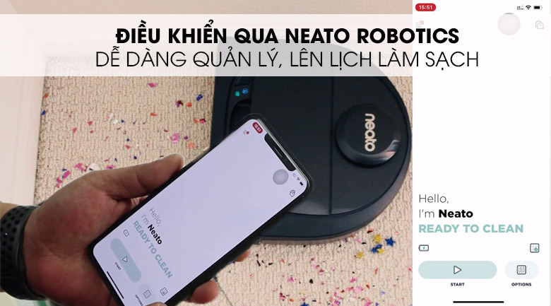 Người dùng dễ dàng quản lý, điều khiển, bản đồ quét dọn cho ngôi nhà thông qua ứng dụng Neato Robotics được cài đặt trên điện thoại.