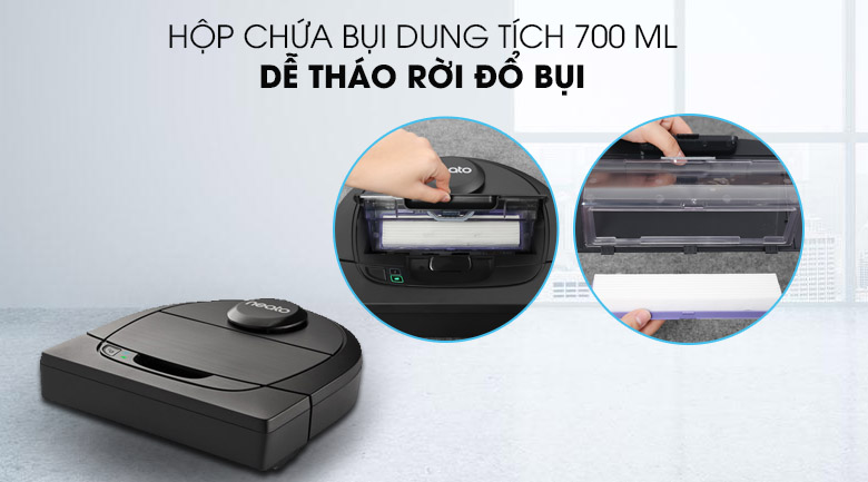 Dung tích hộp chứa bụi 700 ml, có thể tháo lắp dễ dàng, giúp người dùng vệ sinh cách nhanh chóng
