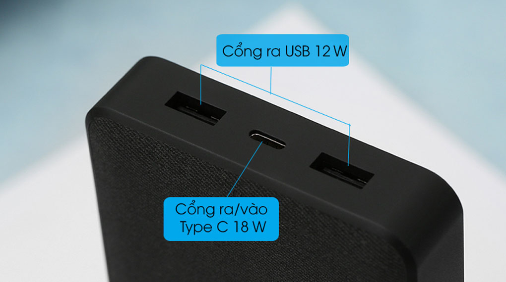 Mình đã sạc thuận lợi đồng thời 3 thiết bị chẳng hạn như: 1 tai nghe và 1 điện thoại, 1 tablet, vì pin sạc này được cung cấp đến 2 cổng ra USB 12 W, 1 cổng ra/vào Type - C 18 W. Với khả năng tương thích với nhiều dòng điện khác nhau thì mình không còn phải lo nguồn điện không thích hợp sẽ làm chai pin hay nóng máy,... cho sạc dự phòng và trang thiết bị được sạc.