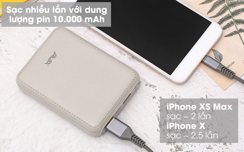 • Sạc nhiều lần với dung lượng 10.000 mAh.