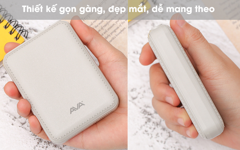 Pin sạc dự phòng AVA thiết kế năng động, cầm vừa tay, dễ dùng
