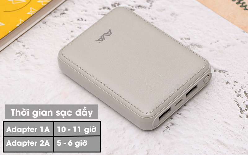 Pin sạc dự phòng 10.000mAh AVA DS008-WB Xám - Thời gian sạc lại cho sản phẩm