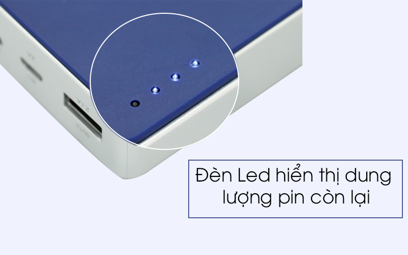 Tương thích với nhiều thiết bị điện thoại, máy tính bảng. Có 4 đèn Led hiển thị dung lượng pin, mỗi vạch ứng với 25% pin.