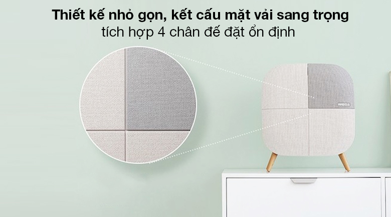 Có 4 chân đế cho bạn để sàn, đặt trên bàn, kệ hoặc có thể treo tường tiết kiệm không gian. Máy lọc không khí tích hợp điều khiển nút nhấn với chỉ dẫn đơn giản, dễ quan sát và tùy chọn chức năng