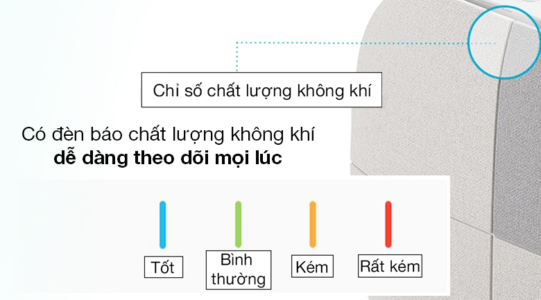 Đèn màu xanh dương: Chất lượng không khí tốt.