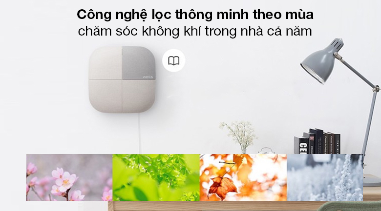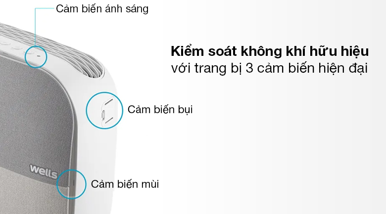 Máy lọc không khí Wells AL106L, thiết bị lọc không khí chất lượng của thương hiệu Wells - Hàn Quốc, sản xuất tại Hàn Quốc, mẫu nhỏ gọn, dễ bố trí, sử dụng, hỗ trợ 3 cảm biến, bộ lọc 4 lớp, công nghệ lọc thông minh theo mùa cho không khí trong nhà luôn sạch sẽ, trong lành.