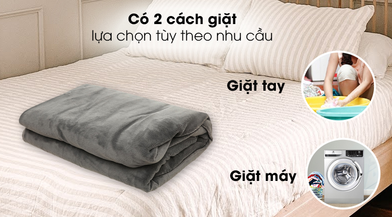 Tuy nhiên khuyến cáo nên bỏ qua chế độ vắt, chỉ giặt xong phơi luôn, không nên giặt chăn điện quá thường xuyên. Để đảm bảo hệ thống dây điện bên trong chăn không bị xô lệch và trầy xước, bạn nên sử dụng một chiếc ga mỏng trải lên trên bề mặt chăn để hạn chế tối đa việc giặt chăn điện.