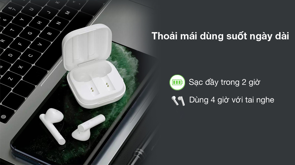 Thời lượng sử dụng tai nghe Haylou 4 giờ và thêm 16 giờ cùng hộp sạc nâng tổng thời gian dùng lên 20 giờ, chỉ mất khoảng 2 giờ để nạp lại pin cho hộp sạc, dung lượng dữ trữ khá tốt cho bạn sử dụng Haylou GT6 thoải mái suốt cả ngày.