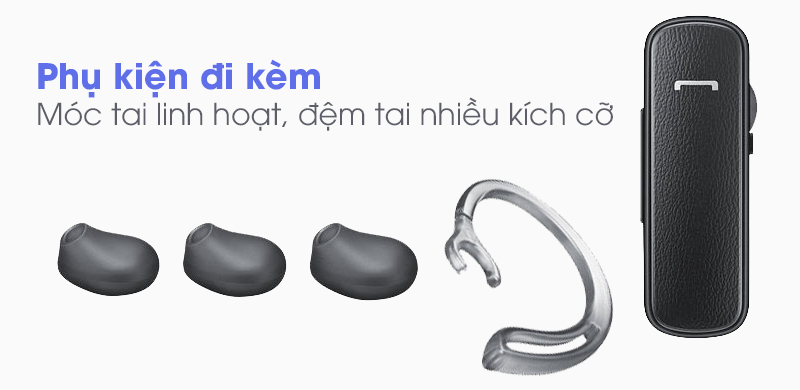 Phụ kiện đệm tai có 3 chiếc trong đó 1 đệm tai gắn trực tiếp trên tai nghe và 2 đệm đi kèm khác. Trang bị móc tai cho việc đeo tai nghe chắc chắn, không sợ rơi rớt khi di chuyển.