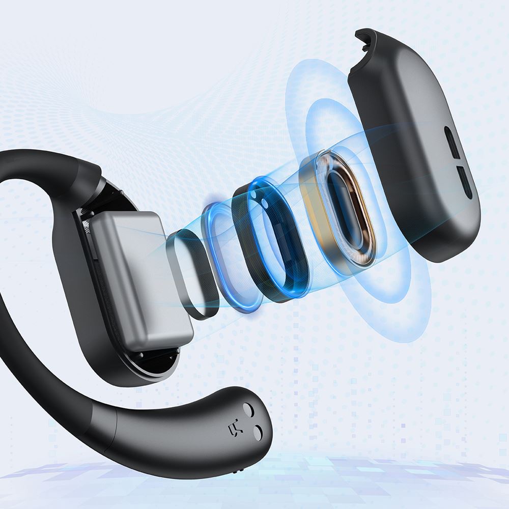 Điểm khác biệt lớn nhất của tai nghe Aukey EP-S1 chính là thiết kế OWS (Open-ear Wireless Stereo) độc đáo. Không còn núm tai cao su gây áp lực lên ống tai, bạn sẽ cảm nhận sự thoải mái ngay cả khi đeo trong nhiều giờ liền, rất phù hợp cho những buổi làm việc dài hoặc chuyến đi đường dài.