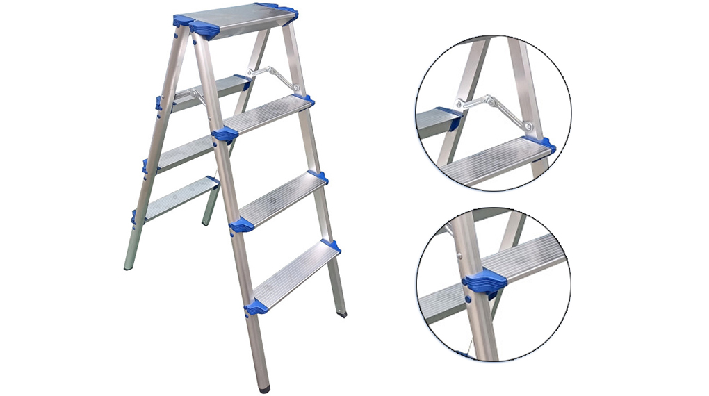 - Chiều cao sử dụng khoảng 99.5 cm, có thể đáp ứng cho việc sửa chữa điện, lấy đồ trên cao, vệ sinh bàn thờ/tủ, thắp nhang,… tiện lợi. Không những vậy, mẫu thang nhôm này còn có thể gấp gọn, không chiếm nhiều diện tích khi bảo quản cũng như thuận tiện cho việc mang vác khi cần thiết.