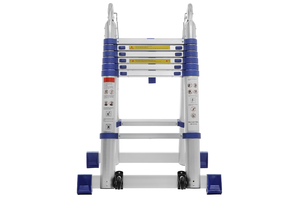 Thang nhôm có thể linh hoạt thay đổi thiết kế chữ A hoặc chữ I để tiện cho các thao tác, làm việc trên cao. Thiết kế chữ A chắc chắn, chống rung lắc, thoải mái khi làm việc. Mặt khác, chỉ cần kéo nhẹ thang để đạt đến chiều cao tối đa 440 cm.