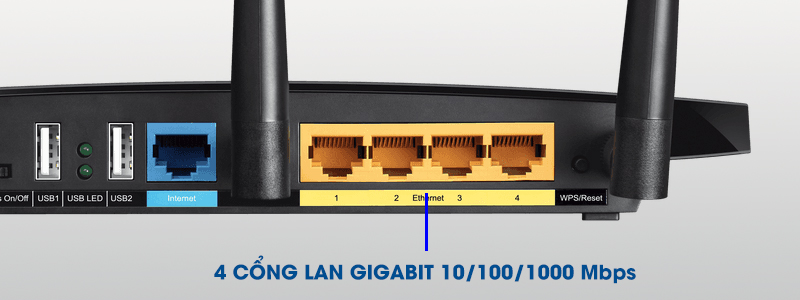 Được trang bị tới 4 cổng LAN Gigabit tốc độ 10/100/1000Mbps, router Tplink này cho bạn thêm nhiều sự lựa chọn kết nối với các thiết bị khác như máy tính, laptop.