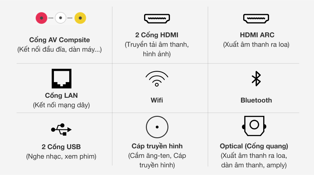 • Tivi màn hình 43 inch sở hữu thiết kế sang trọng, thanh lịch.