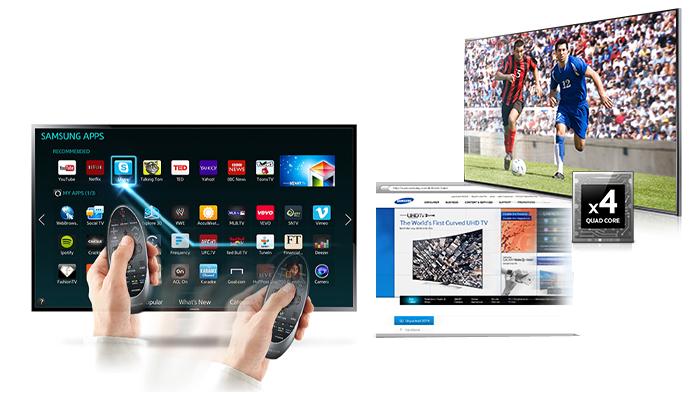 Sức mạnh của chip lõi tứ Quad core giúp mang đến hiệu hiệu quả xử lý mạnh mẽ, giúp việc chuyển đổi giữa các nội dung, lướt web (cách kết nối mạng trên tivi Samsung) hay tương tác trên giao diện Smart Hub trở nên mượt mà hơn nhiều lần cho Samsung smart tivi. Đặc biệt, tivi trang bị điều khiển Touchpad có tính năng giống như chuột vi tính, nên bạn có thể di chuyển con trỏ trên màn hình, lựa chọn ứng dụng hay nội dung yêu thích cũng như nhập văn bản dễ dàng và nhanh chóng.