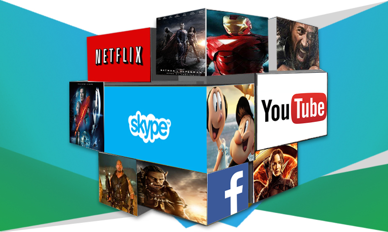 Smart tivi giao diện Tizen cho phép kết nối mạng để sử dụng nhiều ứng dụng bổ ích trong kho ứng dụng phục vụ cho việc học tập, giải trí, kết nối bạn bè như trình duyệt web, YouTube, FPT Play, Netflix, Facebook, Skype, Zing TV (tuy nhiên không có ứng dụng Zing MP3).