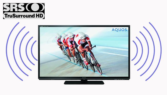 Tivi Sharp được trang bị công nghệ âm thanh vòm TruSurround cùng hệ thống Audio Engine TM LSI của Yamaha mang đến bạn những âm thanh vô cùng sống động và mạnh mẽ. Công nghệ âm thanh vòm ảo của tivi cho phép cung cấp các âm thanh với chất lượng tương đương với một hệ thống âm thanh 5.1 của một rạp chiếu thu nhỏ chỉ bằng chính 3 loa công suất 35W của tivi (Các công nghệ âm thanh trên tivi Sharp).
