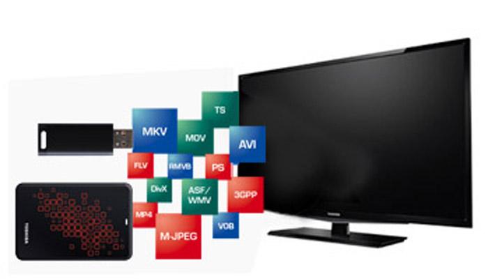 Bên cạnh việc có 1 cổng HDMI cho bạn ghép nối tivi với máy tính bộ, thì tivi cũng hỗ trợ 2 cổng USB giúp bạn nghe nhạc, xem ảnh và xem phim. Tính năng USB Movie của Toshiba hỗ trợ đọc đến 28 định dạng video giúp bạn thỏa sức xem các đoạn phim yêu thích được lưu trữ sẵn trong USB. (Điểm mặt các kết nối trên tivi).