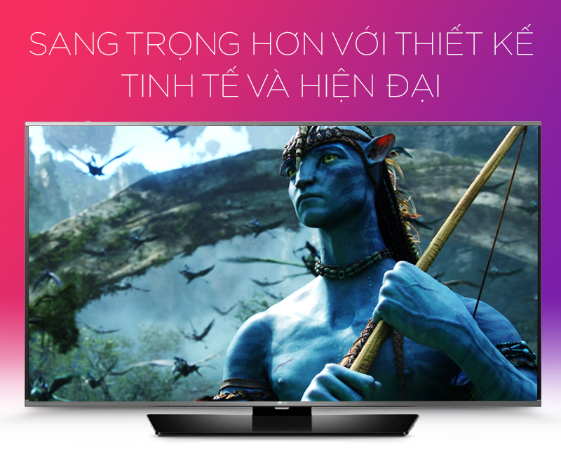 Khung tivi được bao bọc bởi đường viền mỏng bằng kim loại tinh tế, thích hợp với không gian nội thất trong nhà.