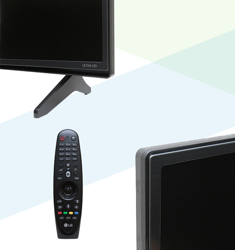 Tivi bán kèm remote thông minh (Magic remote) của LG, hỗ trợ thao tác trên tivi tương tự như con chuột máy tính.