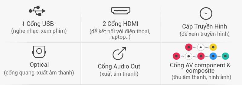 Tivi LED LG sở hữu nhiều cổng kết nối như HDMI, USB, Optical,… giúp chia sẻ nội dung giải trí với nhiều thiết bị như laptop, USB, dàn máy,…