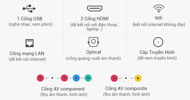 Tivi LG 4K dòng 49UF680T có nhiều cổng kết nối như HDMI, USB, Optical,…cho đa dạng các thiết bị giải trí như laptop, dàn máy, đầu DVD,…