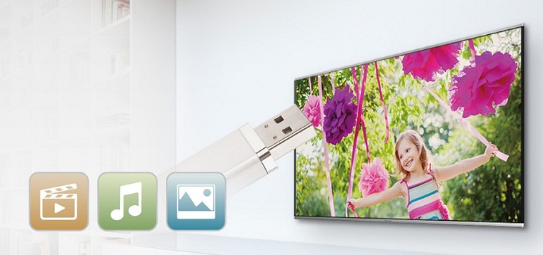 + 3 cng USB: Chỉ cần cắm trực tiếp USB lên tivi là bạn đã có thể nghe nhạc, xem ảnh, xem phim.
