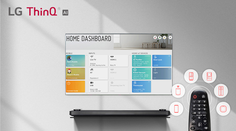 Tivi OLED LG với trí thông minh nhân tạo AI ThinQ đi kèm Magic Remote thông minh giúp bạn tương tác với tivi một cách tốt hơn. Nâng cao trải nghiệm điều khiển và tìm kiếm giọng nói trên tivi.