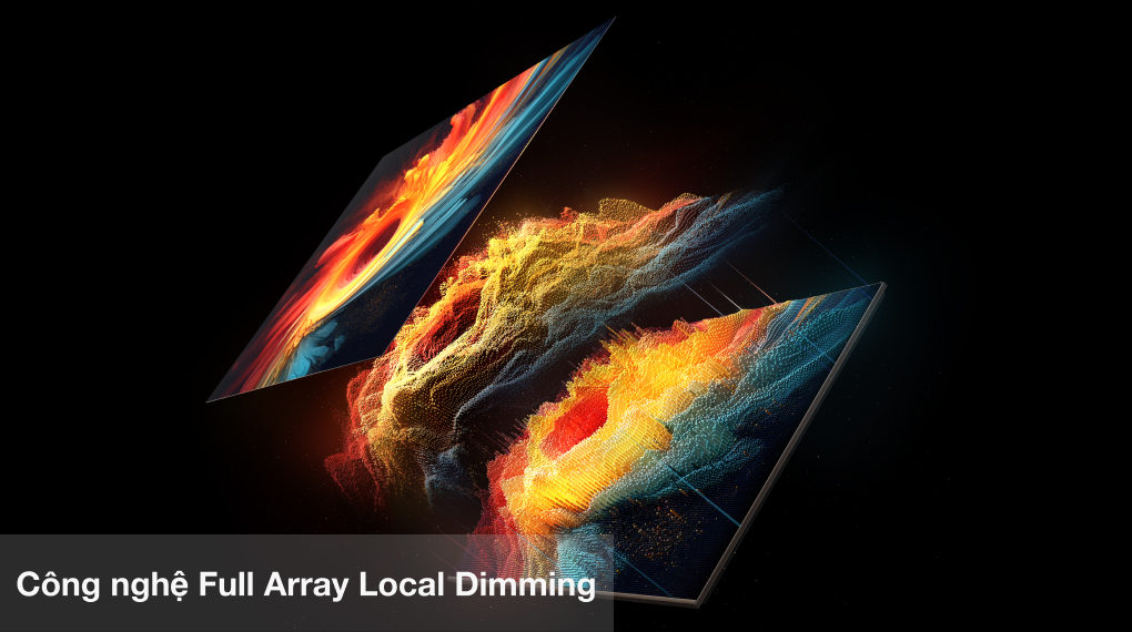 - Nhờ vào công nghệ Full Array Local Dimming, màn hình kiểm soát chính xác từng vùng đèn nền, từ đó tạo độ tương phản tốt hơn giữa vùng tối và vùng sáng, tăng chiều sâu hình ảnh.
