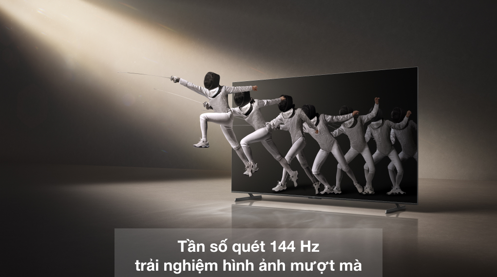 - Tần số quét 144 Hz kết hợp VRR (Variable Refresh Rate) và FreeSync giúp hiển thị chuyển động mượt mà, giảm thiểu hiện tượng xé hình và giật hình khi chơi game tốc độ cao hoặc xem các cảnh hành động nhanh.