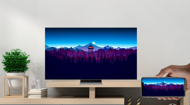 Cùng với tính năng AirPlay 2 thì Samsung còn trang bị thêm cho chiếc tivi Samsung QLED này tính năng Tap View, người dùng chỉ cần chạm nhẹ điện thoại vào các cạnh tivi để nhận tín hiệu, từ đó có thể chia sẻ những nội dung hình ảnh, video từ điện thoại sang smart tivi một cách dễ dàng chỉ bằng một cái chạm.